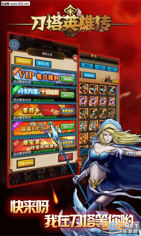 刀塔英雄传(BT变态版)手游是一款以刀塔为题材的战斗类游戏,带领玩家进入一个非常精致的场景中,收集各种不同的卡牌,享受各种不同的刺激对战!游戏中还有非常丰富的系统,各种新奇的道具系统,炫酷的装备系统以及非常多样的角色系统,带领玩家创造另一个传奇!