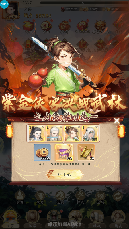 ★紫金侠客抽奖功能-元宝也能抽顶级紫金侠客