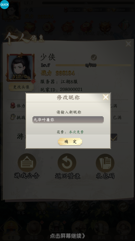 ★充值比例1:10,登录赠送侠客、称号、海量材料以及元宝奖励