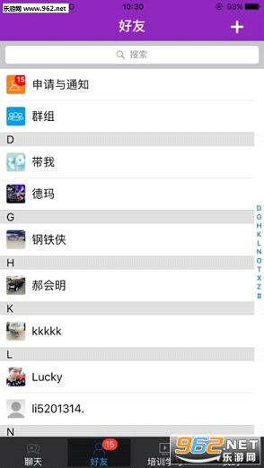 5、好友页面---有新的添加信息,申请与通知会有飘红显示,点击进入申请与通知,接受或者拒绝好友申请请求。