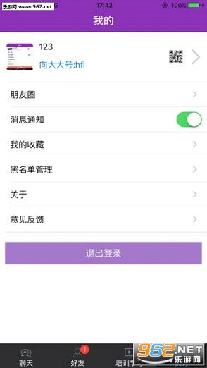 4、好友页面---第一个好友显示的是用户本人,自己不可与自己聊天。点击右上角加号扫一扫或者输入好友昵称/向大大号,查找到好友,并发送好友申请来添加好友。