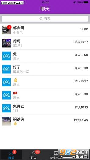 3、聊天页面,初次申请登录时,是无好友的,所以聊天列表为空。待加了好友有聊天之后,上方搜索栏,输入好友昵称可快速找到好友。