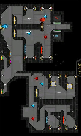 疯狂酷跑之旅是一款双人跑酷游戏,与电脑游戏森林冰火人相似,在游戏中,分为冰人和火人两个角色,玩家需要两个人相互配合,破解机关,打开迷宫出口,通往下一关。玩家在游戏的过程中,也可将途中的星星吃掉,增加打分。有兴趣的玩家赶紧来开启全新的闯关之旅吧。