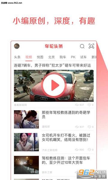 不只是聚合各大网站的汽车视频,还有车轮小编的原创内容,有深度、又有趣。
