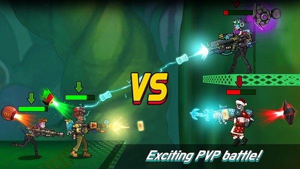 1、不断升级的英雄角色,在实战种累积作战经验,解锁新的枪支和武器。