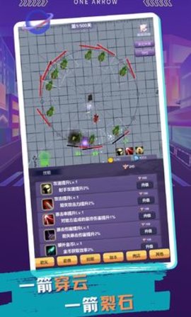 一支支支支箭是一款非常好玩的闯关游戏,在游戏里面有超多关卡等你来体验,每一个关卡都能给你带来不一样的游戏乐趣,游戏玩法模式非常丰富,玩家可以选择自己喜欢的模式进行挑战,还有各种武器装备供你选择,升级武器会让你更加的强大,喜欢的小伙伴快来下载吧。