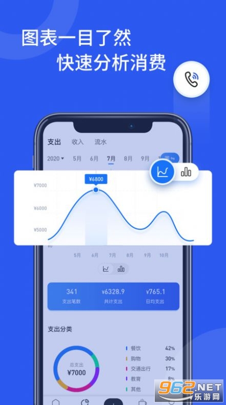 3、消费趋势:一目了然的图表,即刻记账app帮你快速分析消费情况。