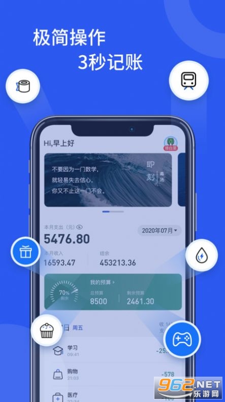 1、3秒钟记账:极简的操作流程,让你3秒钟即可完成一笔记账操作;