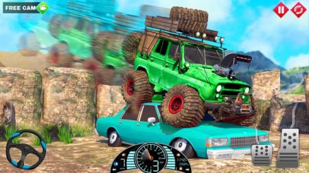 越野重型车辆是一款十分优质的野外越野赛车驾驶玩法手游,在这款游戏中玩家将模拟驾驶越野卡车,在地形崎岖的道路上行驶,改装赛车!