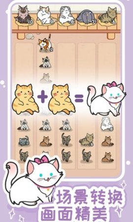 1、合成与管理完美结合的模拟游戏,放松心情,各种超萌小猫等你养成;