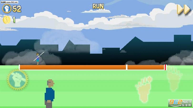 游戏玩法很简单,连续点击右下角两个按钮来模拟跑步,控制小人加速,在指定的位置内投掷标枪即可。运动员的速度越快,标枪将扔得越远,当然,还得注意扔出去的标枪方向。喜欢标枪这个运动的玩家千万不可以错过这款游戏哟!