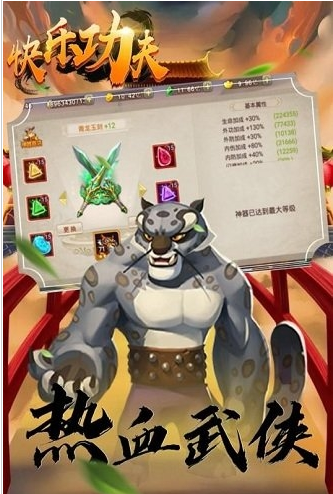 《快乐功夫》是一款全新的功夫武侠策略rpg手游,游戏中以动物为原型、功夫为主题、力求国内顶尖的美术品质、精细的动作设计、丰富的游戏玩法,打造出一个拥有数十位性格迥异、背景莫测的功夫大师以及千万种战斗组合的功夫世界。 英雄,想成为这片土地上新的大师吗?这里有数十位性格迥异而又身手不凡的英雄,他们都在期待着与你结缘,同生死共进退。