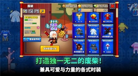 废材武林是一款非常好玩的冒险游戏,游戏采用经典复古的像素画风,游戏关卡非常丰富,每一个关卡都能给玩家带来不一样的游戏体验,还有超多任务等你完成,完成任务会获得大量的游戏奖励,升级自己的技能装备会让自己更加的强大,能挑战更厉害的boss,让玩家可以感受刺激精彩的战斗,喜欢的小伙伴快来下载吧。