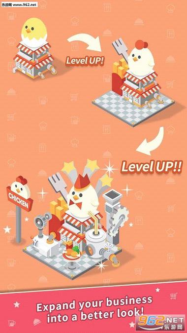 《小鸡餐厅(Foodpia)》是一款清新卡通风格的模拟经营小游戏,以小鸡乐园般的城市为背景,玩家可以帮助小鸡老板经营自己的饭馆,学习更多的菜肴做法,提升饭馆的等级,吸引更多的客人来赚取,当然在小鸡餐厅无限金币版的提供下,玩家还需要不断去学习新技能。