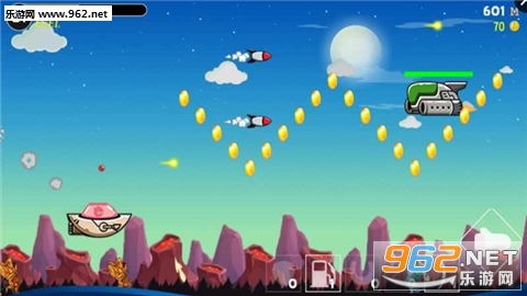 在游戏中,擦空你的UFO进行飞翔,不断前进。在前进的过程中,你可以发射子弹攻击敌方UFO,也需要吃下各种道具和金币,躲避沿途可能让你追击的障碍。