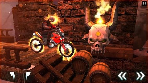 2、化身恶灵骑士,驾驭那无所不能的摩托车,去挑战各种高难度的游戏关卡。