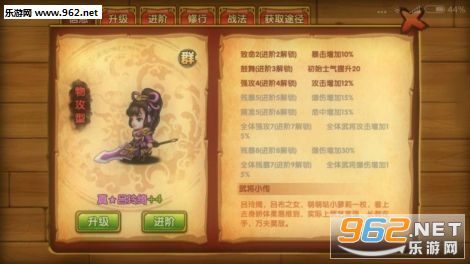 卡牌强化:卡牌升级是主要增加属性的,然后就是进阶,前几个进阶一般是增加是固定属性,后几个进阶都是百分比增加属性,缘分都是用装备.兵书和坐骑.卡牌等激活缘分,紫色卡大都是紫色品质类激活缘分.橙色卡则是橙色类品质激活缘分,最后的战法则是百分比增加属性。