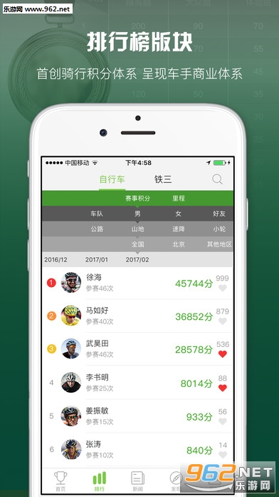 (1)将车手比赛成绩与积分相结合,做国内最具影响力的骑行赛事车手排行榜。