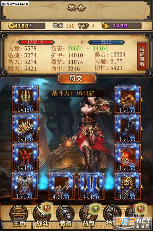 3)装备。穿戴、更换、洗练、强化装备,或者给装备镶嵌宝珠,传承神器属性,能够获得更好的属性,从而提升英雄的战斗力。