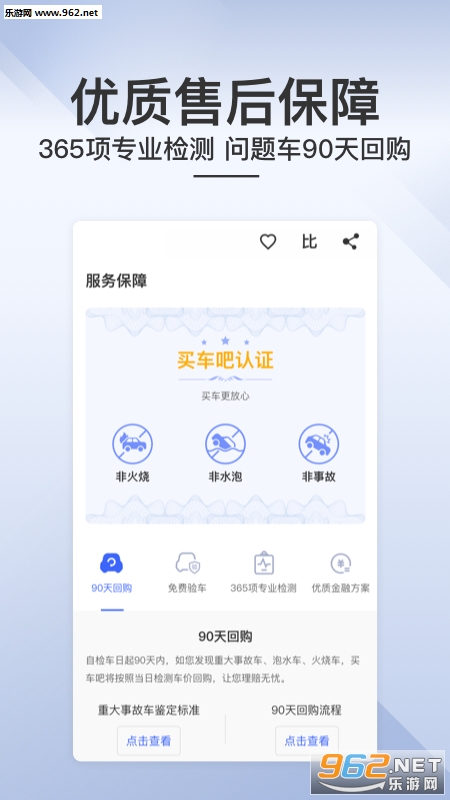 365项严苛检测标准,问题车90天回购,杜绝大事故、火烧车、水泡车,海量靠谱二手车都在这