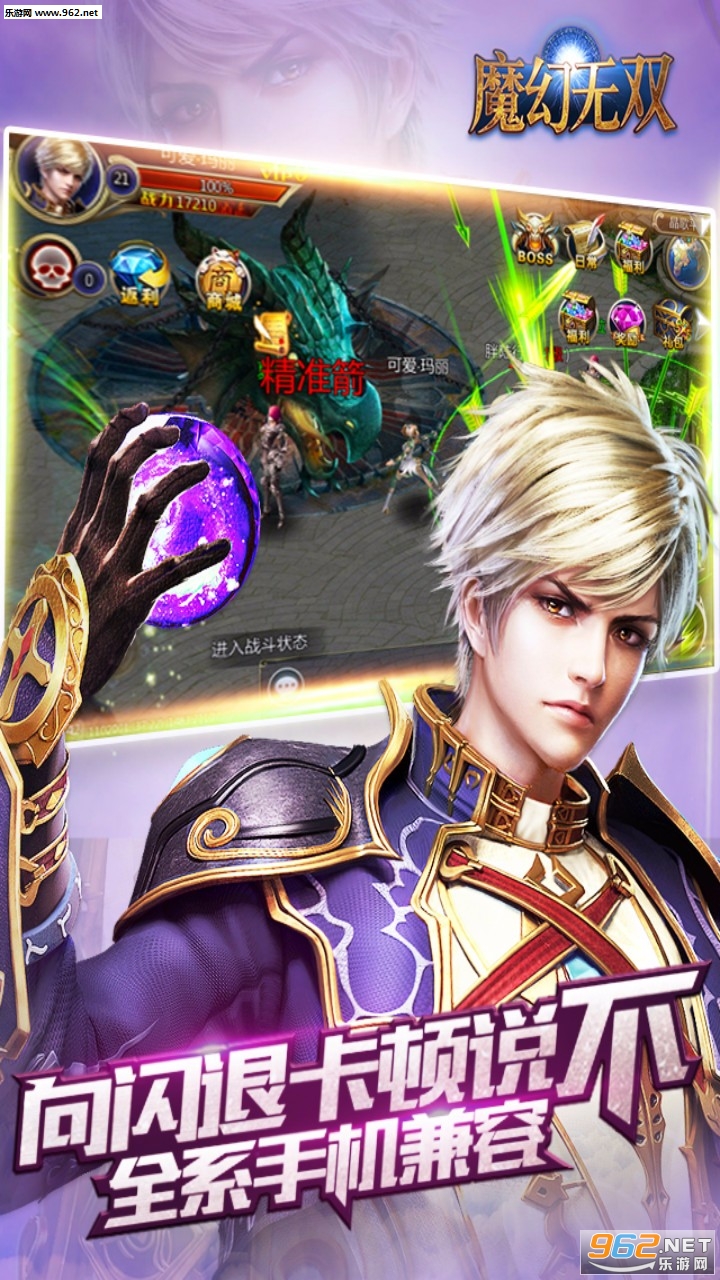 《魔幻无双》欧美城镇和唯美人物故事的激情融合,无体力畅爽战斗,三职业多阵营联合对抗,端游式职业互补,各色系统极限养成,装备打造、技能符文、即时竞技、野外Boss、婚恋系统、世界boss、公会争霸、跨服单挑!