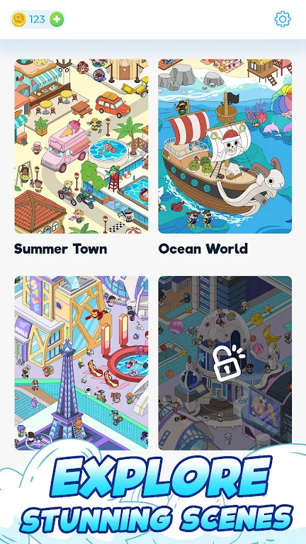 踏上视觉冒险之旅,您将在令人惊叹的场景中搜寻巧妙隐藏的物品。随着难度等级的提高,您将找到放松身心和测试注意力的完美挑战。