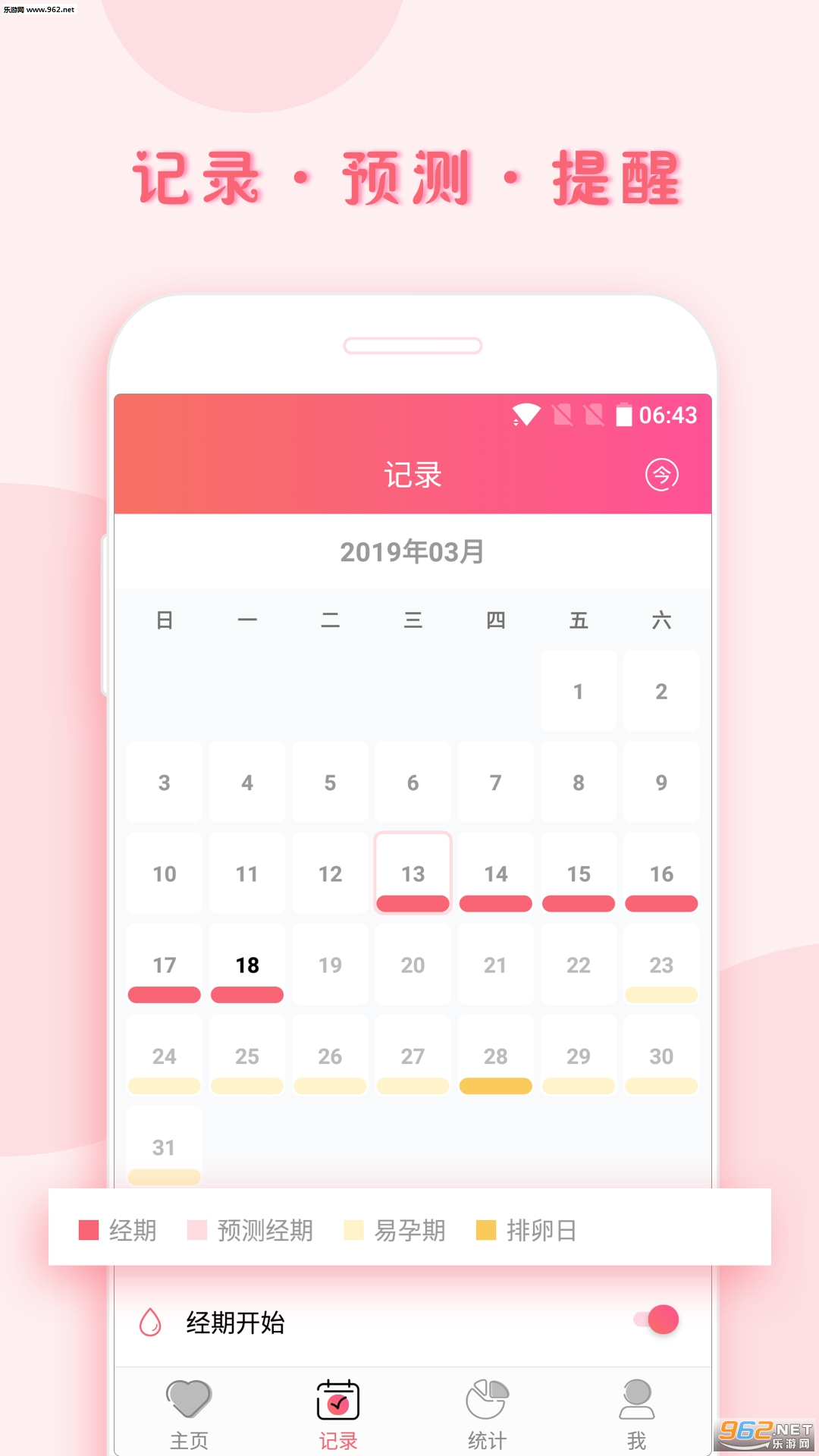 主面板综合月经周期的各种提示,简单清除、一目了然