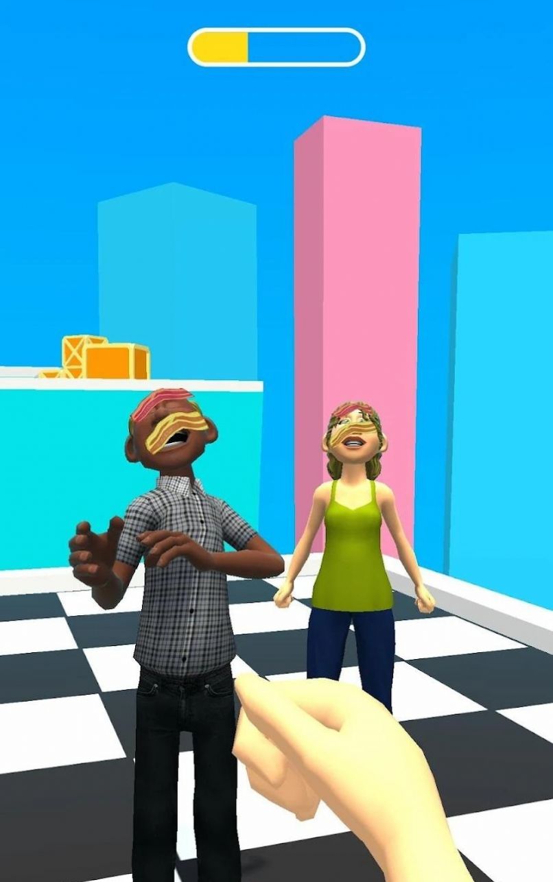 拿着奶酪片和培根扔在别人脸上进行恶作剧的游戏,当你精准的扔在他们脸上,他们就像僵尸被贴符定住了一样,站在原地不动,且面上露出各种各样神情,有害怕、大笑、愤怒、悲伤等等,非常有趣,但有的人一个奶酪片不能停止他的脚步,必须向他多扔几个。