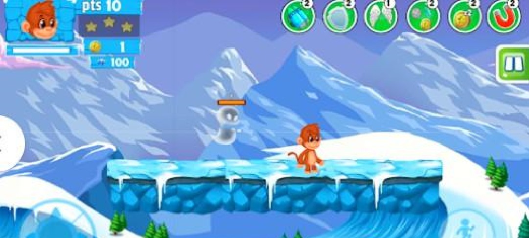 小小冒险猴游戏是一款横版动作闯关游戏。故事的主角是一只可爱的小猴子,在经典横版闯关冒险中带领你的小猴子过三关斩六将,左手控制小猴子的左右移动,右手控制小猴子的跳跃,完成各种平台跳跃挑战,各种主题关卡带来了大量新鲜的挑战,各种道具将能够帮助你克服各种突如其来的陷阱与挑战,做好准备开始冒险吧!