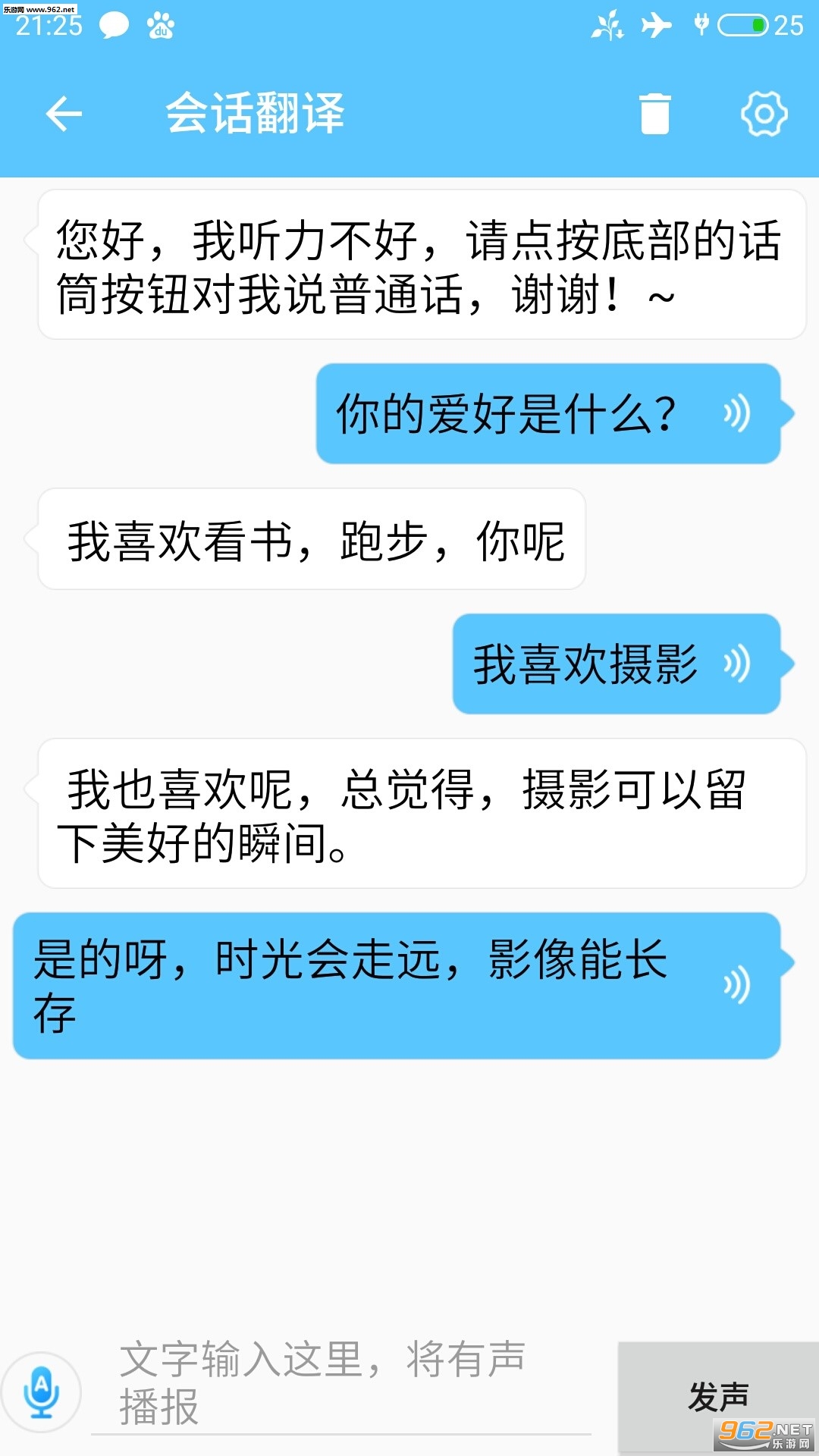 1.会话:健听人点击话筒对着手机说话,可以实时将健听人的语音转换成文字,帮助听障人理解;