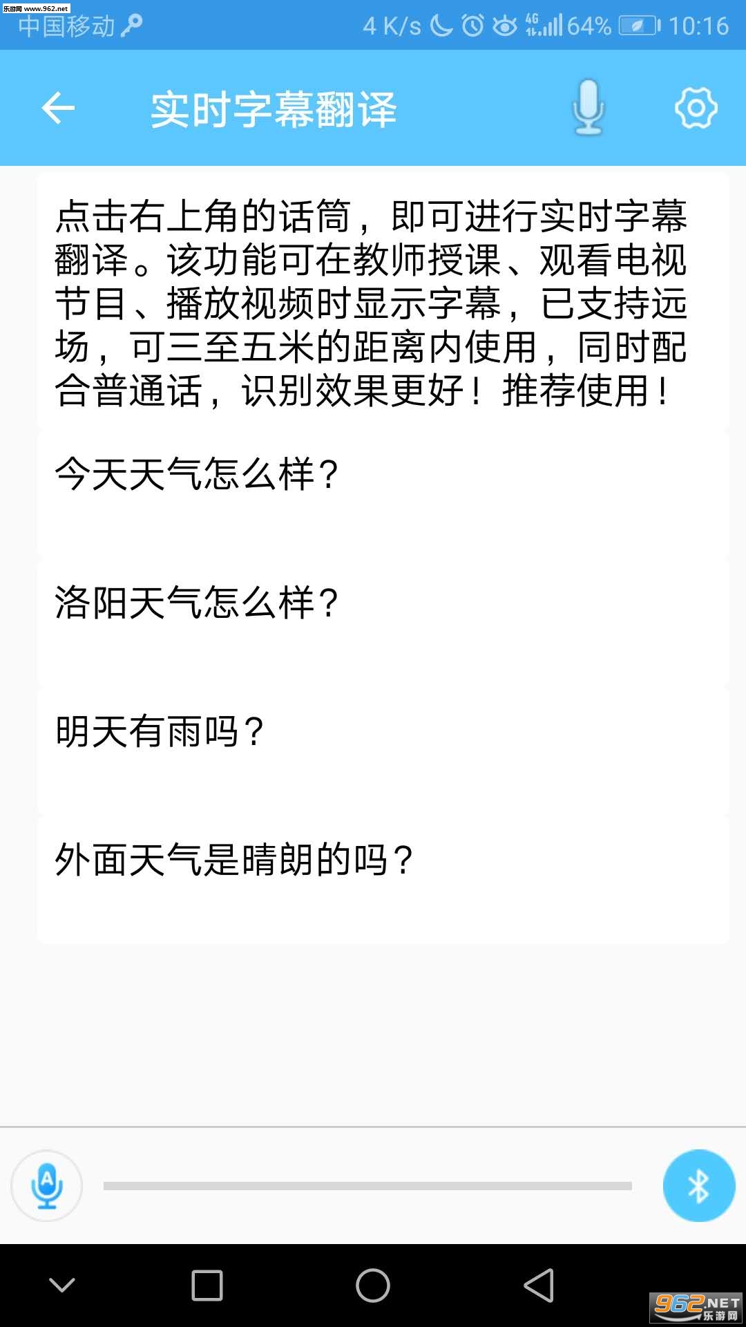 6.电话:在有wifi的时候,接通电话后免提打开慧译,可以将对方的电话语音转换成文字,帮助听障人打电话(此功能目前只支持5.1以下版本的安卓系统)