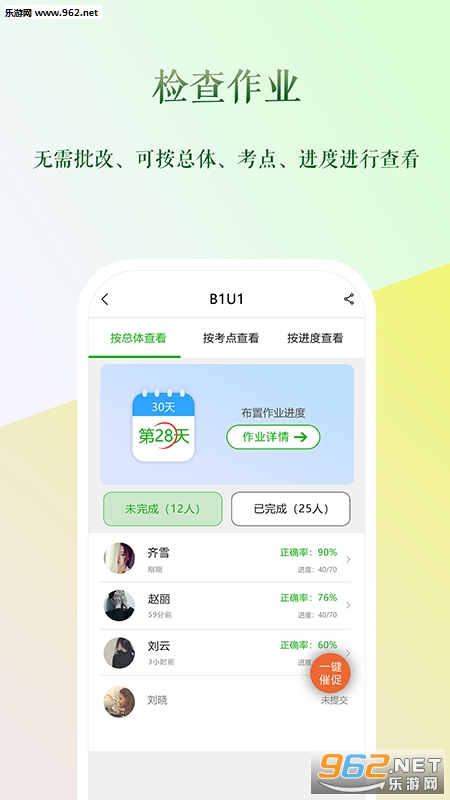 无需批改可按总体、考点、进度进行查看