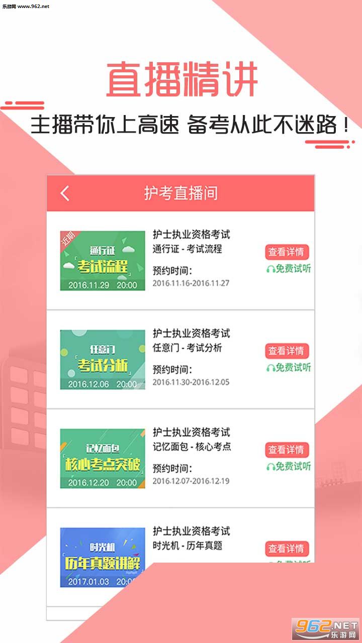 ●护考直播间:名师在线直播核心课程,逗逼课堂,轻松学习,干货送不停