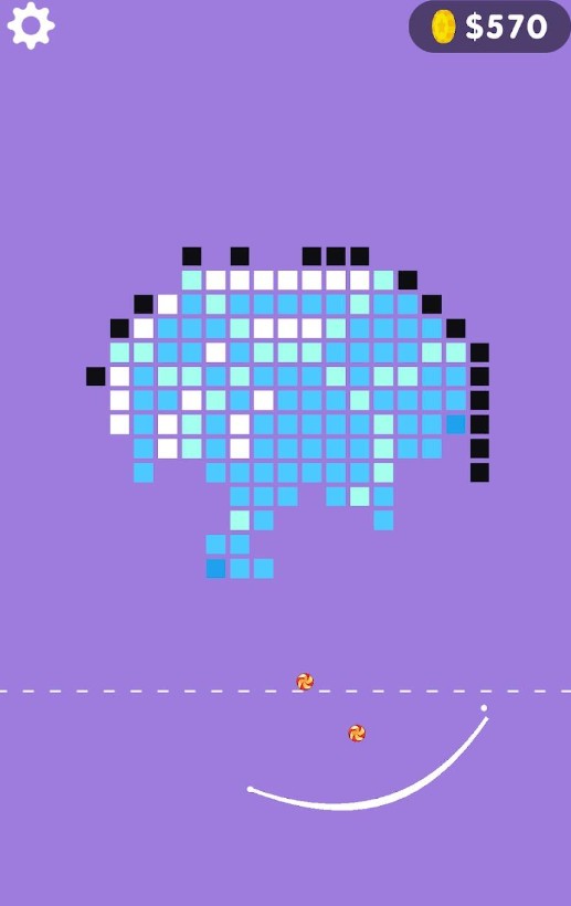 2、接住小球并弹出去,将像素块消除,获得金币奖励;
