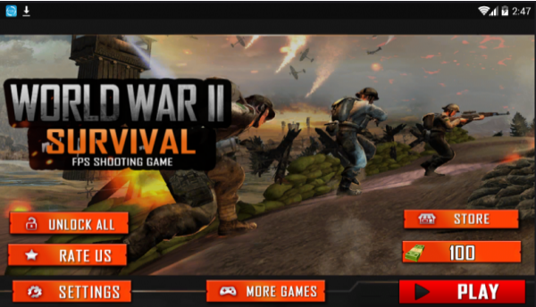 二战绝地求生是一个融合了二战主题的枪战射击类游戏,全程需要玩家通过自己的第三人称视角来进行操作,每一个角色和场景建模都是采用3D立体的技术打造,而且还会有更为多变的天气情况为玩家增加生存的难度和挑战性,当然既然是枪战游戏强大的枪械和装备也都是非常重要的,庞大的战争地图之中也可以让你尽情的开始探索,搜寻更多武器。
