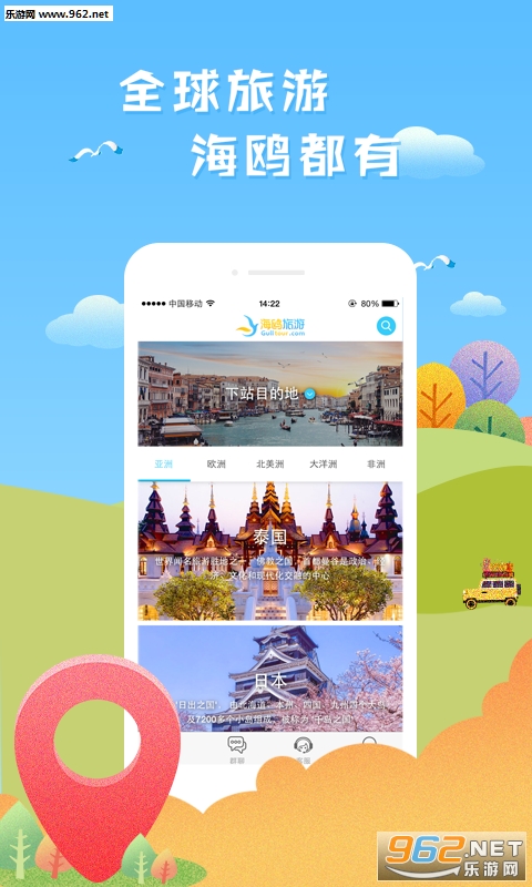 《海鸥旅游app》整合全球旅游资源,为用户提供全方位的旅游服务,用户通过海鸥旅游app可以提前了解旅游目的地信息,获取实用旅游指南,轻松预订各地酒店,价格实惠有保障,让旅游出行更省心省钱。