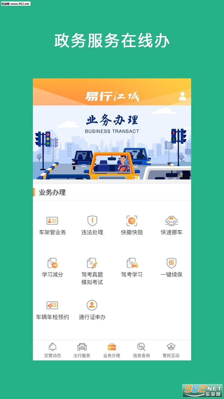 “易行江城”是武汉市公安交管局在“互联网 ”背景下,联合互联网公司打造的服务市民出行和在线业务办理的App,是武汉市智慧城市“云端武汉”系列的一部分。作为武汉市智慧交通诱导的微门户,武汉市民可以通过App“一站式”享受行车、停车诱导和交管政务服务。主要包含四大模块:新闻公告、出行服务、业务办理和警民互动。提供交通分析、出行导航、智能停车、违法处理、快撤快赔等一系列移动端服务和业务办理功能,让群众“多走网路、少走马路”。