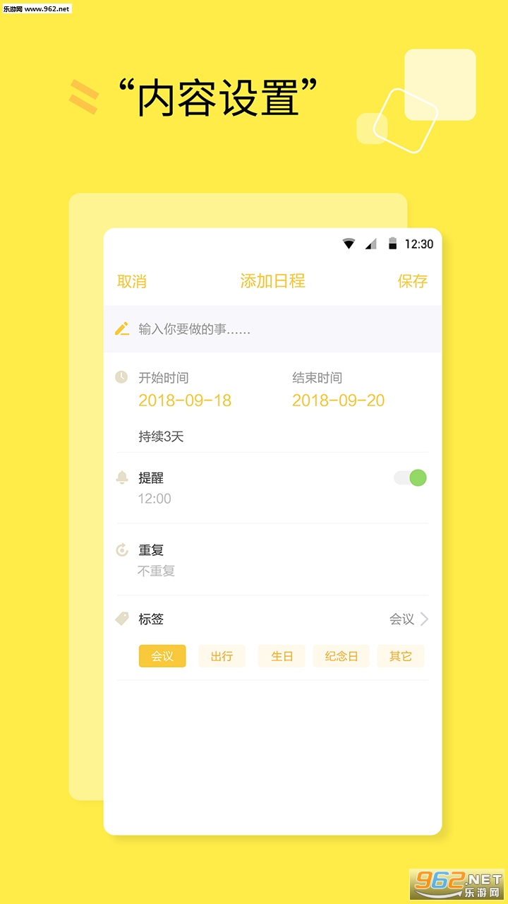日程计划清单,管理好你的每个日程和计划,一个为智能手机量身定制的专业应用,能让你在外出时迅速地确认日程表和行程表,不管你要去哪儿,做什么任务,都能在应用内轻松完成。