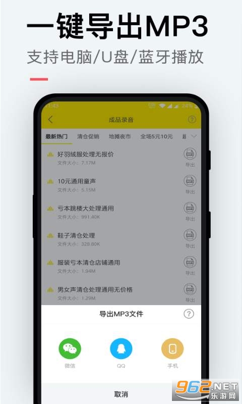 2、支持导出MP3和蓝牙播放:支持一键导出MP3,可拷贝到U盘或内存卡里面播放