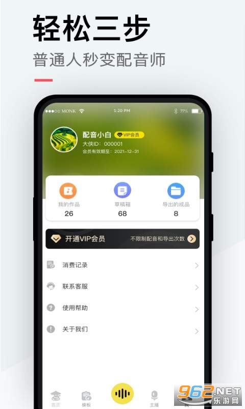 《配音侠》是一款非常专业的手机配音软件,这款软件的主要功能就是将文字转换为专业的培英,还支持各种各样的语音合成,配音模板等多种功能,通过这款软件你可以完成短视频的配音剪辑,商业广告等,当然还有着各种各样的调音功能,赶快下载体验吧!