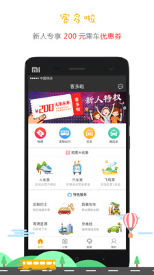 客多啦是一款集飞机票、汽车票、火车票预订,出租车、顺风车、巴士、包车于一体的综合出行交通服务工具,专注国内客运出行服务,让您随时随地轻松预订旅途车票。
