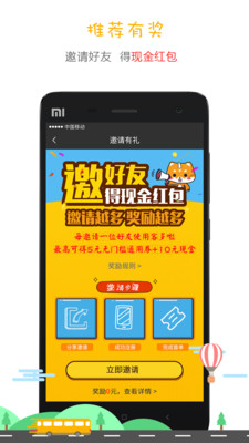 『推荐有奖』每邀请一个好友可获得10元现金+5元通用乘车券,邀请越多,奖励越多;