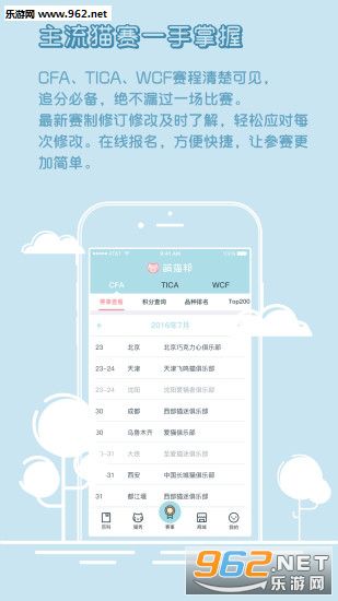 CFA、TICA、WCF赛程清楚可见,追分必备,绝不漏过一场比赛。
