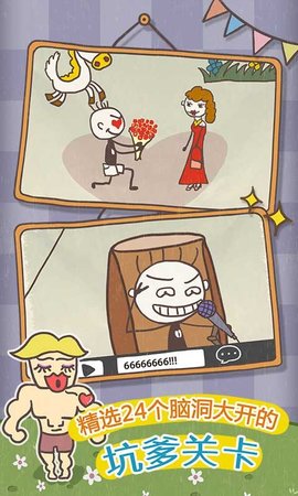 1000+个来自坑爹游戏玩家的奇思妙想,上百种坑爹玩法,最终精挑细选的24关玩家创意,没有最坑,只有更坑!