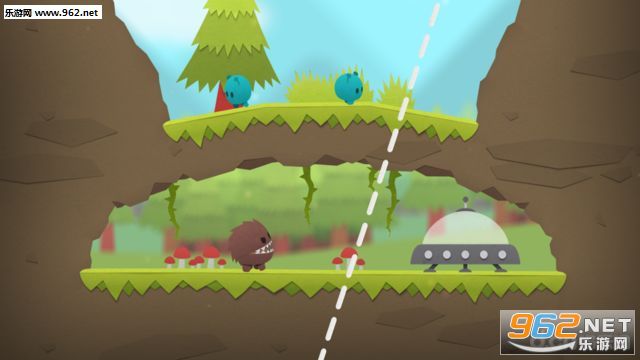 《普利特生物》同样是一款画面简单而机制独特的游戏,玩家的游戏目的就是帮助萌萌哒外星人找寻回飞船的路线,游戏当然没有这么简单,玩法就在此体现。因游戏场景中外星人和飞船的路线被地形隔离,而且场景中存在各类陷阱、机关和怪物,因此玩家想要达到目的就需要切割和操作场景的运动才能让外星人顺利到达飞船。