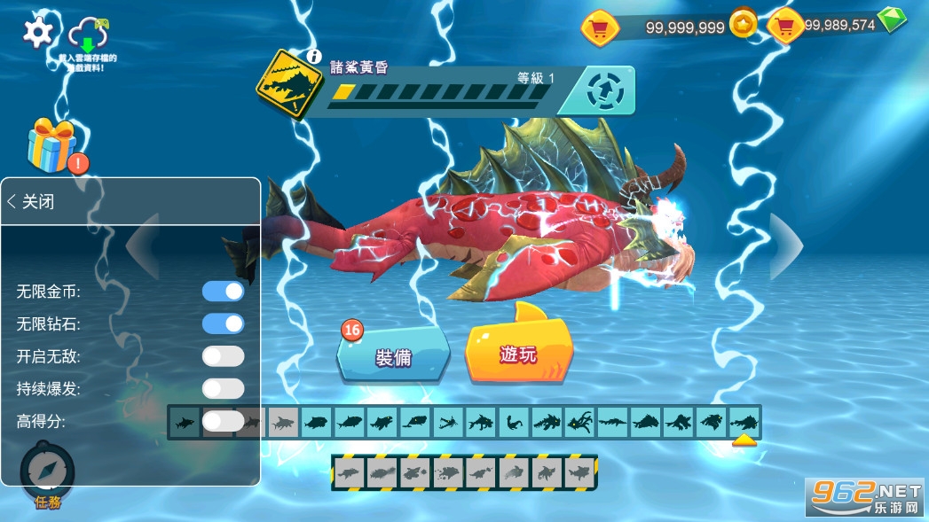 逐渐解锁更多水下凶猛野兽:灰鲭鲨、锤头鲨、虎鲨和无敌的大白鲨!
