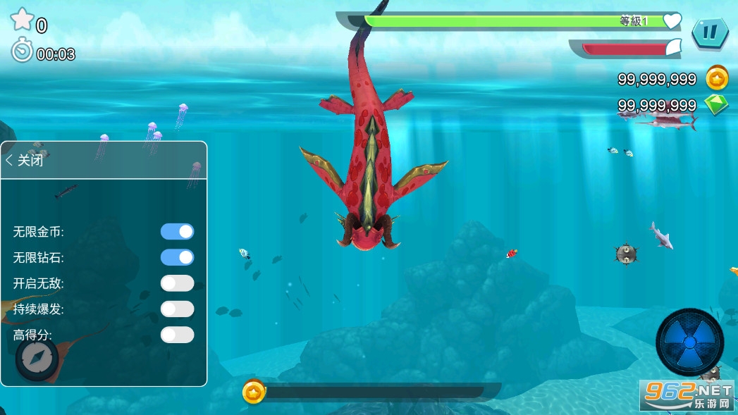 与其它鲨鱼、潜水艇、以及更多奇奇怪怪的深海生物作战,获得高分!