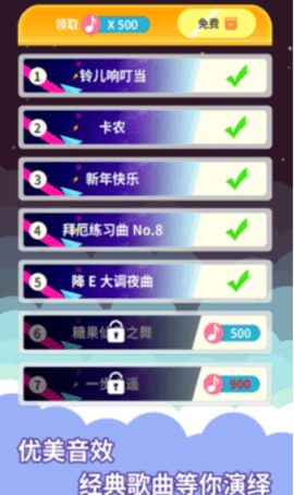 玩钢琴块儿一方面是为了练习反应速度,游戏里的歌曲也是很棒的,升级的话可以玩的歌曲会更加的多,特别是前面几级的时候,升级可以一次性解锁好几首歌曲。
