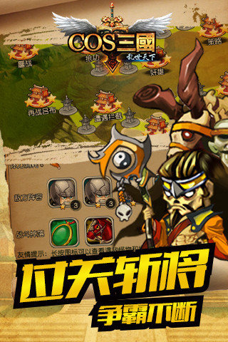 游戏中玩家将在在英雄成堆的三国时代,反窜英雄豪杰,去争夺王者之位,去参加跨服大战,需要不断的过关斩将,快来招募你的武将,一起战斗吧!