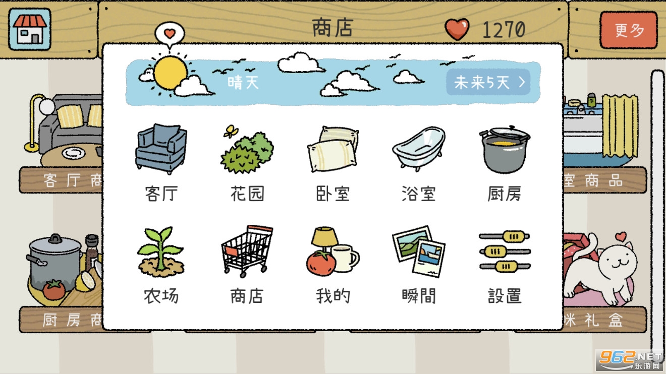 一款非常有趣的休闲模拟游戏,游戏中玩家可以通过购买各种各样的商品来获得更多的爱心,然后解锁所有的区域,然后用商品装饰它,你的同伴将在不定时之后回到家中,一起享受快乐的生活吧!
